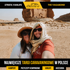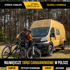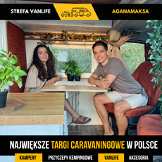 Jesteśmy Oliwia i Konrad. Marzenie o domu na kołach kiełkowało w nas wiele lat. Pomysł o zakupie niewiadówki ewoluował do pełnowymiarowego kampervana, którego zbudowaliśmy sobie w własnymi rękoma jako prezent poślubny od nas dla nas! Od lata 2023 zwiedziliśmy vanem Czarnogórę, Rumunię, Chorwację, Słowenię, Słowację i oczywiście naszą Polskę. W podróżach cenimy najbardziej poczucie wolności i bliskość natury. Zaraz po targach ruszamy w podróż zwiedzać kolejne, nieznane nam jeszcze, zakątki Europy.
