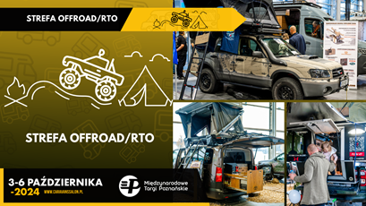 Podczas 6 edycji targów Caravans Salon Poland w Poznaniu zadebiutuje nowa strefa wystawiennicza: OFFROAD/RTO. Organizatorzy targów, we współpracy z wystawcami, postanowili stworzyć na targach caravaningowych miejsce dla entuzjastów wypraw poza szlakiem i biwakowania w trudniejszym terenie. Ekspozycję poświęconą tej tematyce zaplanowano w Pawilonie 8. Międzynarodowych Targów Poznańskich i będzie ona integralną częścią całej ekspozycji największych targów caravaningowych w naszym kraju.