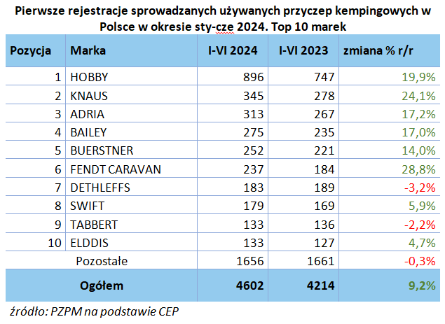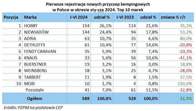 Raport rejestracji kamperów i przyczep kempingowych w pierwszym półroczu 2024 roku