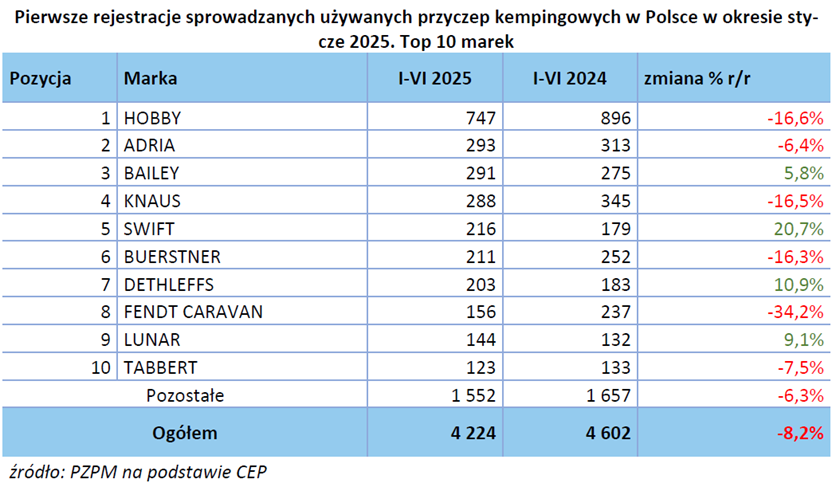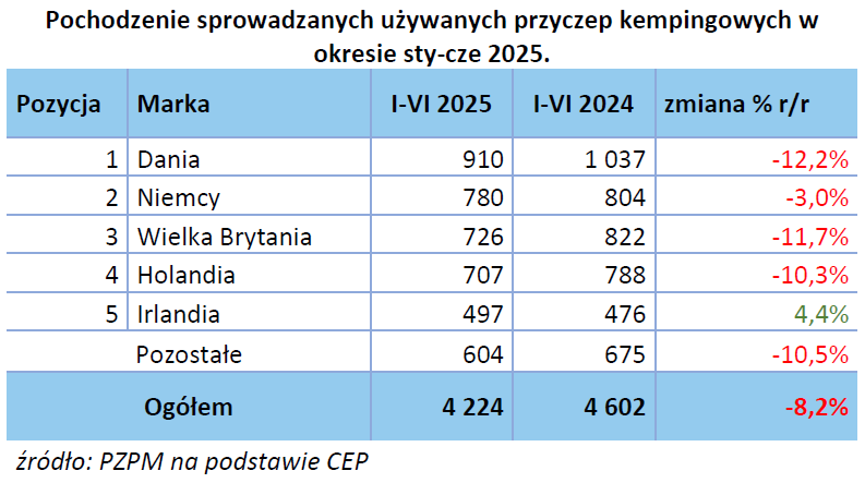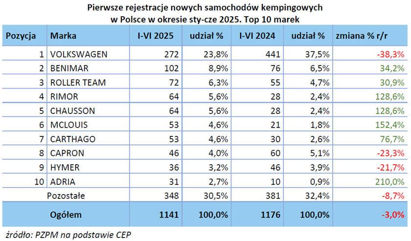 Raport rejestracji kamperów i przyczep kempingowych w pierwszym półroczu 2025 roku