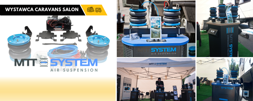 Lider wśród producentów systemów zawieszeń pneumatycznych do Kamperów i wszelkiego rodzaju samochodów dostawczych, firma MTT System dołączyła do grona wystawców Caravans Salon Poland. Dzięki temu, zwiedzający targi będą mogli zapoznać się i zakupić/zamówić wysokiej klasy zawieszenie dopasowane do swojego pojazdu.