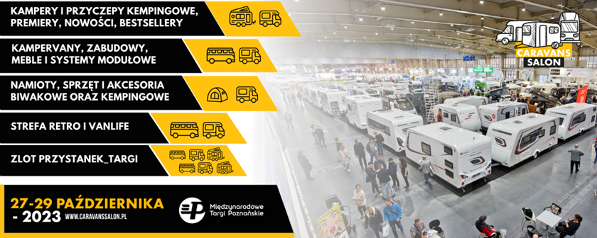 Znamy datę VI edycji targów caravaningowych w poznaniu. Tym razem zaprosimy miłośników kamperów, biwakowania i podróży, na teren Międzynarodowych Targów Poznańskich w dniach 27-29 października 2023 roku. Podobnie jak w latach ubiegłych, razem z targami Caravans Salon odbędzie się szereg innych imprez związanych z turystyką: Tour Salon, Festiwal Śladami Marzeń oraz kolejna edycja Yacht Salon.